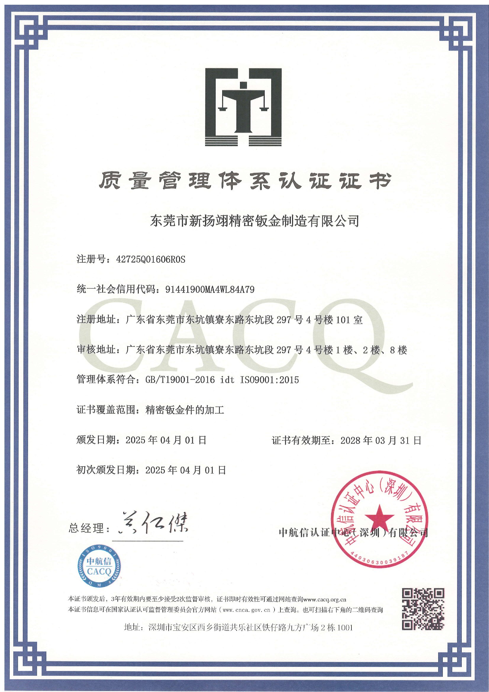 東莞市新揚翊精密鈑金制造有限公司,廠房面積約10000平方米,是一家專業鈑金生產企業。 公司擁有鈑金行業中最先進的設備:德國通快激光切割機、數控剪床、數控折彎機、數控轉塔沖孔機床等專業設備。以精密鈑金及精密機械加工為主。公司可大批量生產各類五金配件(鋁板、鐵板、201 、304、316不銹鋼板砂光、鏡鋼、彩色不銹鋼金屬制品、),精密五金零件;專業生產鈑金機箱、機柜、機架等;公司生產的產品廣泛服務于各個相關行業,如鈑金制品、五金制品、裝飾制品、家私五金、燈飾五金、自動化機械設備、制造業等。